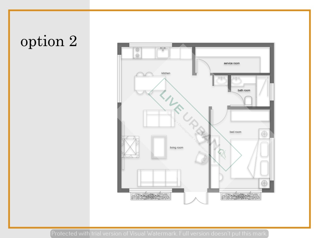 This unit provides great private access from the bedroom to the set back washroom. A second access could be provided from either the kitchen or service room. The layout allows for a wide open living space – you can see clear to the back of the home from the front door.